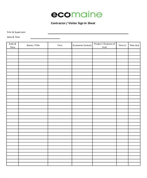 Read Online contractor sign in sheet Hardcover